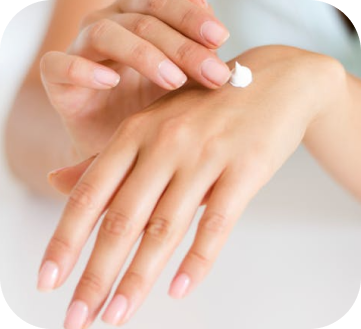 Smooth hand applying skincare lotion at Octa Beauty Ladies Center, Dubai.